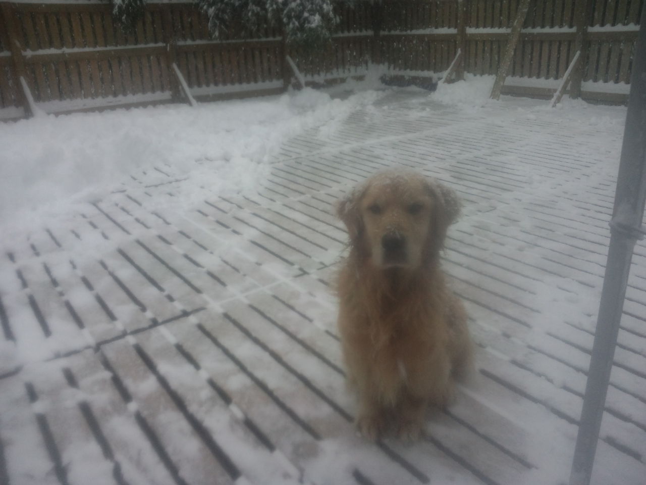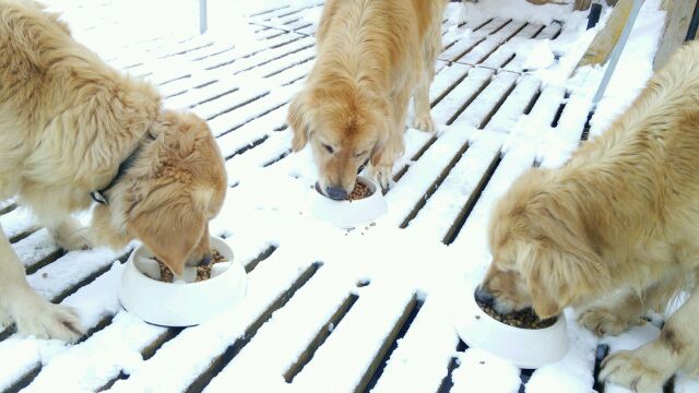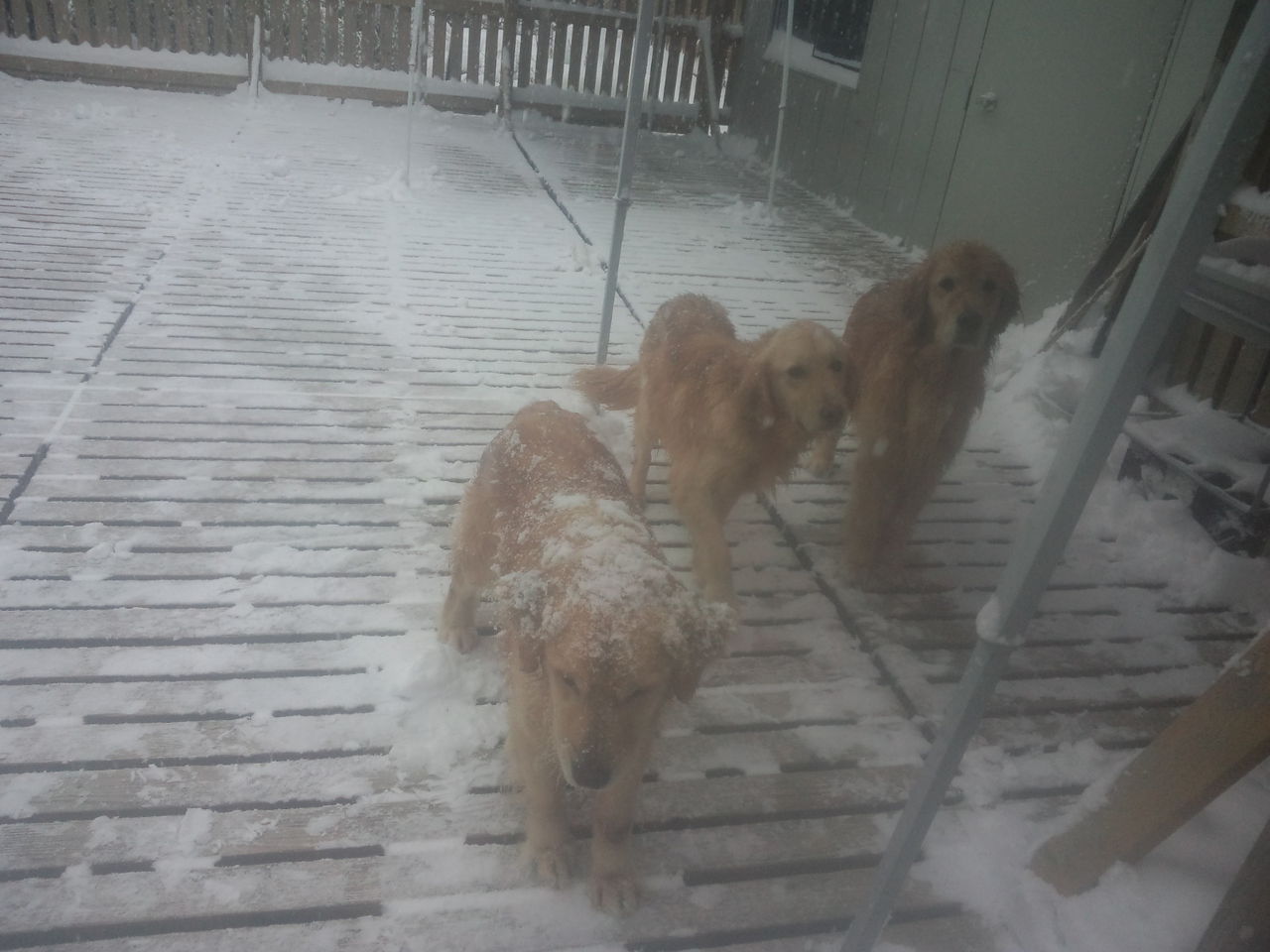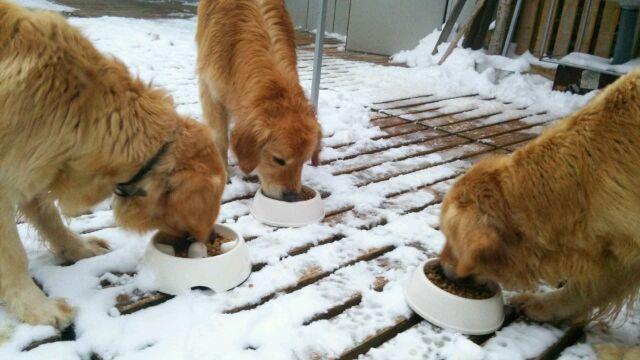 ゴールデンズは雪かきしてる店長にまとわりついて、雪かきの邪魔をしてくれてます。腰が痛いんだから邪魔しないでくれよ~。