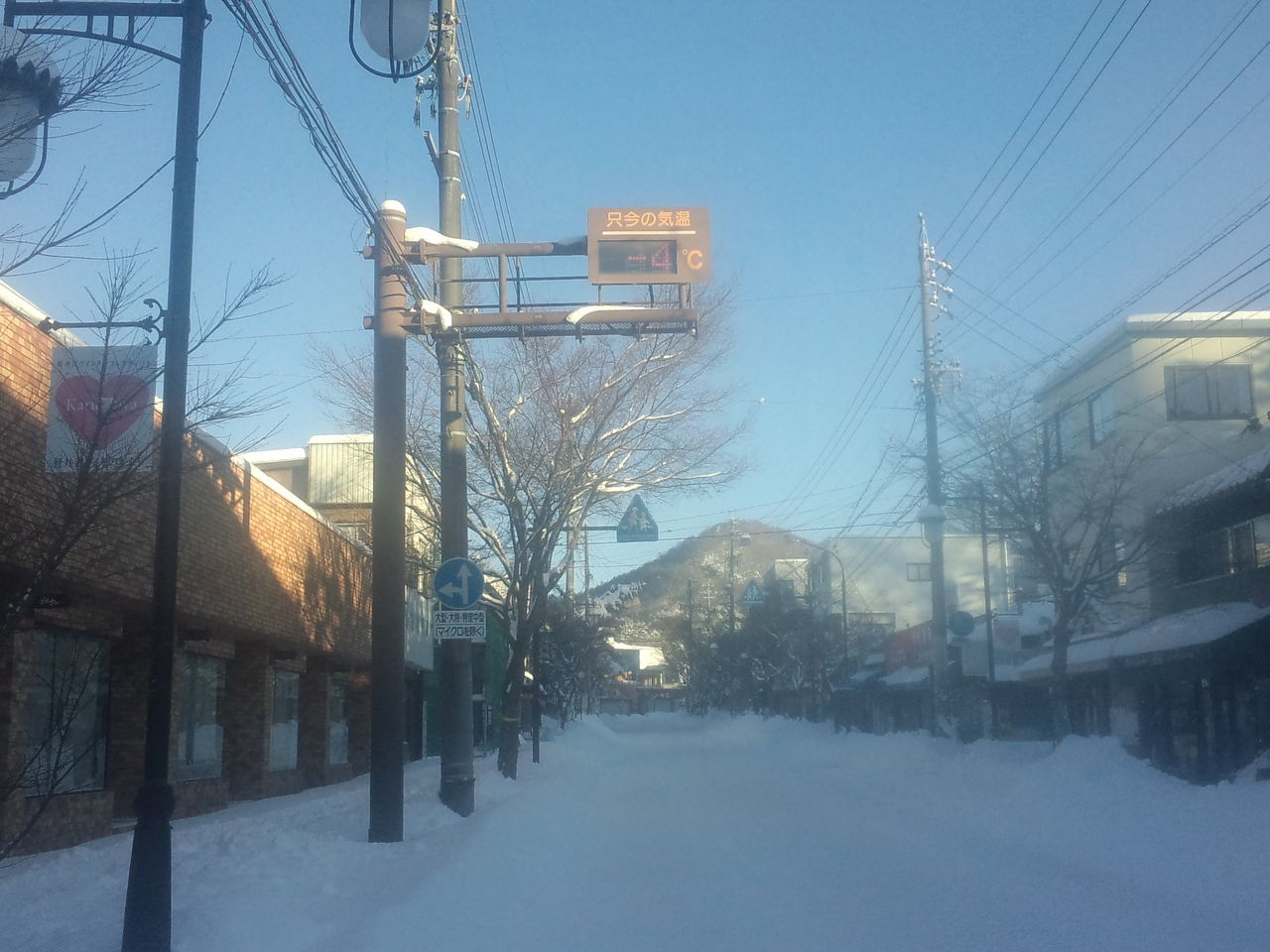 今朝の軽井沢の気温はマイナス4℃。天気は晴れてます。
