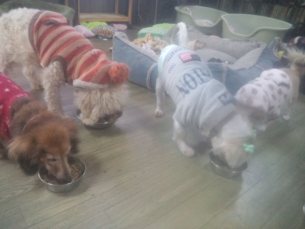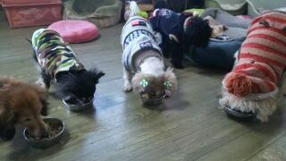 長期預かりチワワバロン君とトイプーゆずちゃん、生涯預かりトイプーテディ君とベラちゃん、しっかり完食しました。 生涯預かりダックスティラミス君とロッキー君、ラブ君とシーズーココ君、しっかり完食しました。 生涯預かりチワワ姫ちゃんとチョコたん君とチョビ君、しっかり完食しました。