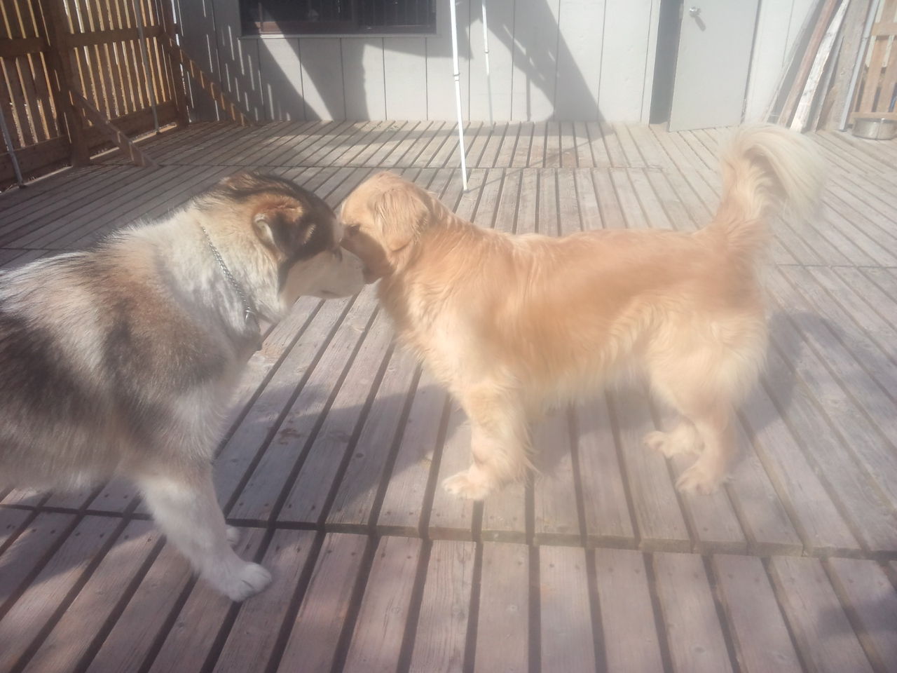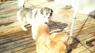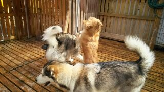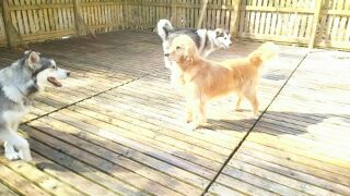 昨日お試しで来てくれたアラスカン・マラミュートのカイ君とハナちゃん、今日はいよいよお預かり本番です。