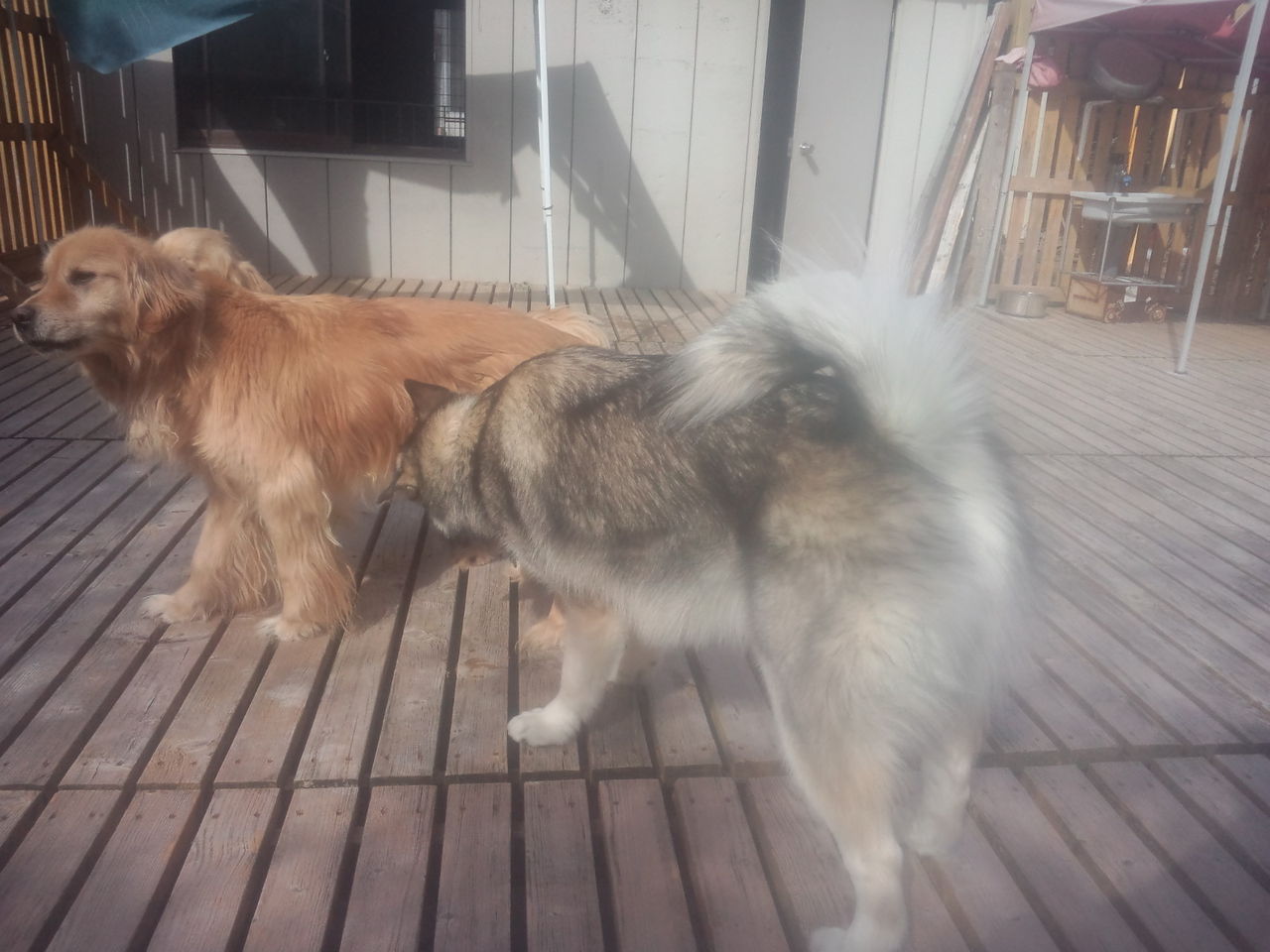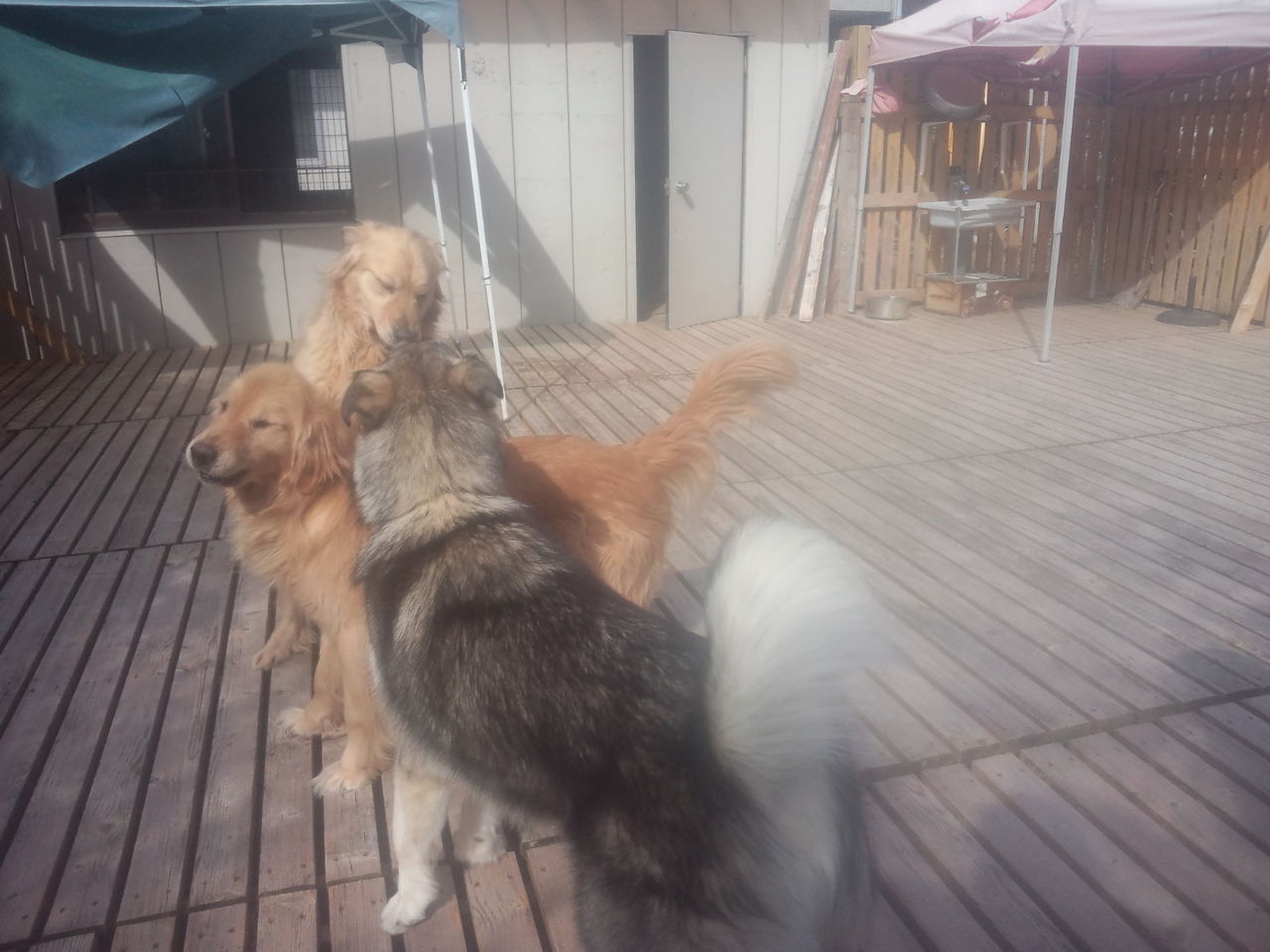 すっかりダディーの大型犬エリアに馴れてくれたカイ君とハナちゃん、入って匂いチェックとマーキングしてました。
