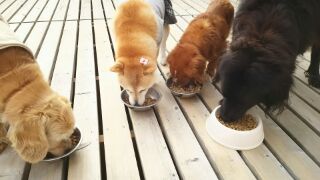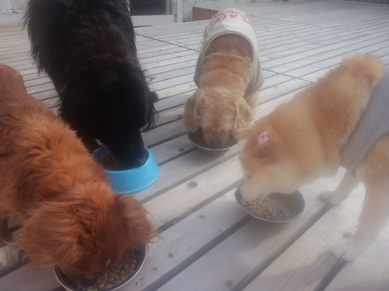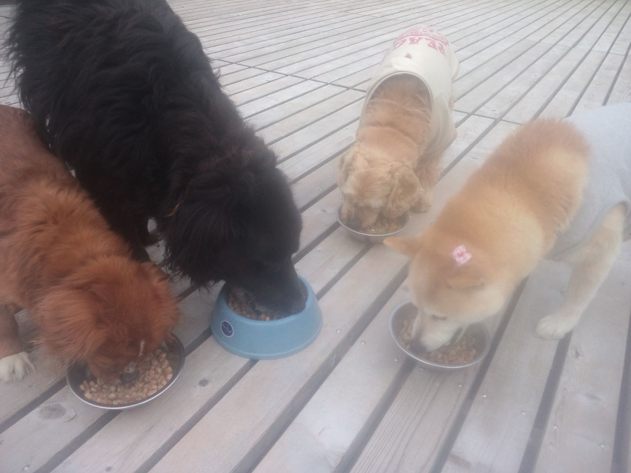 生涯預かり柴凛ちゃんとさくらちゃん、ラブラドールマリンちゃんとミックスポー君とコッカーチャッピーちゃん、しっかり完食しました。