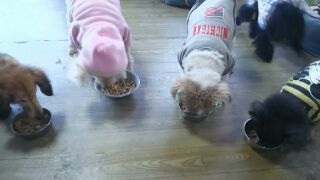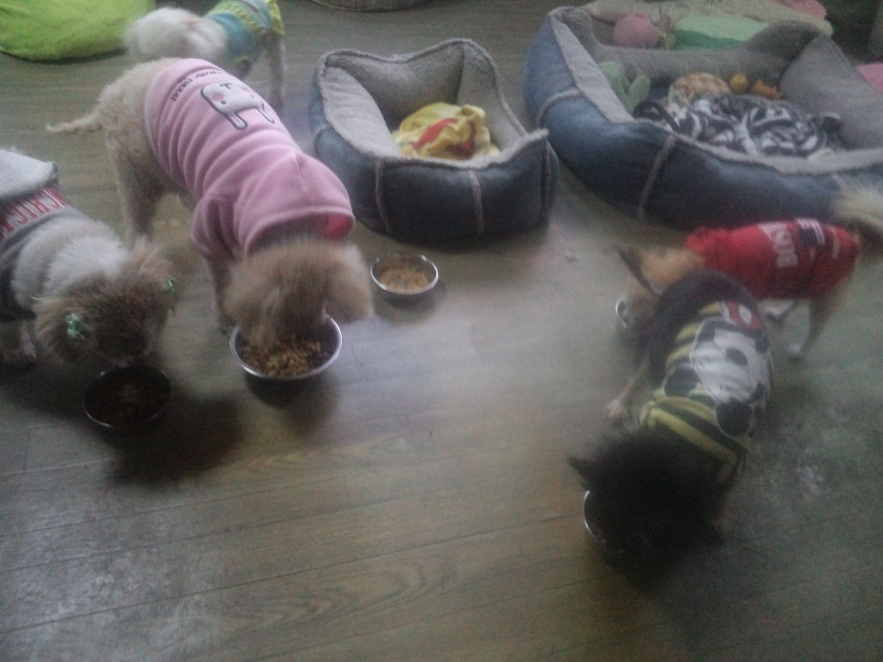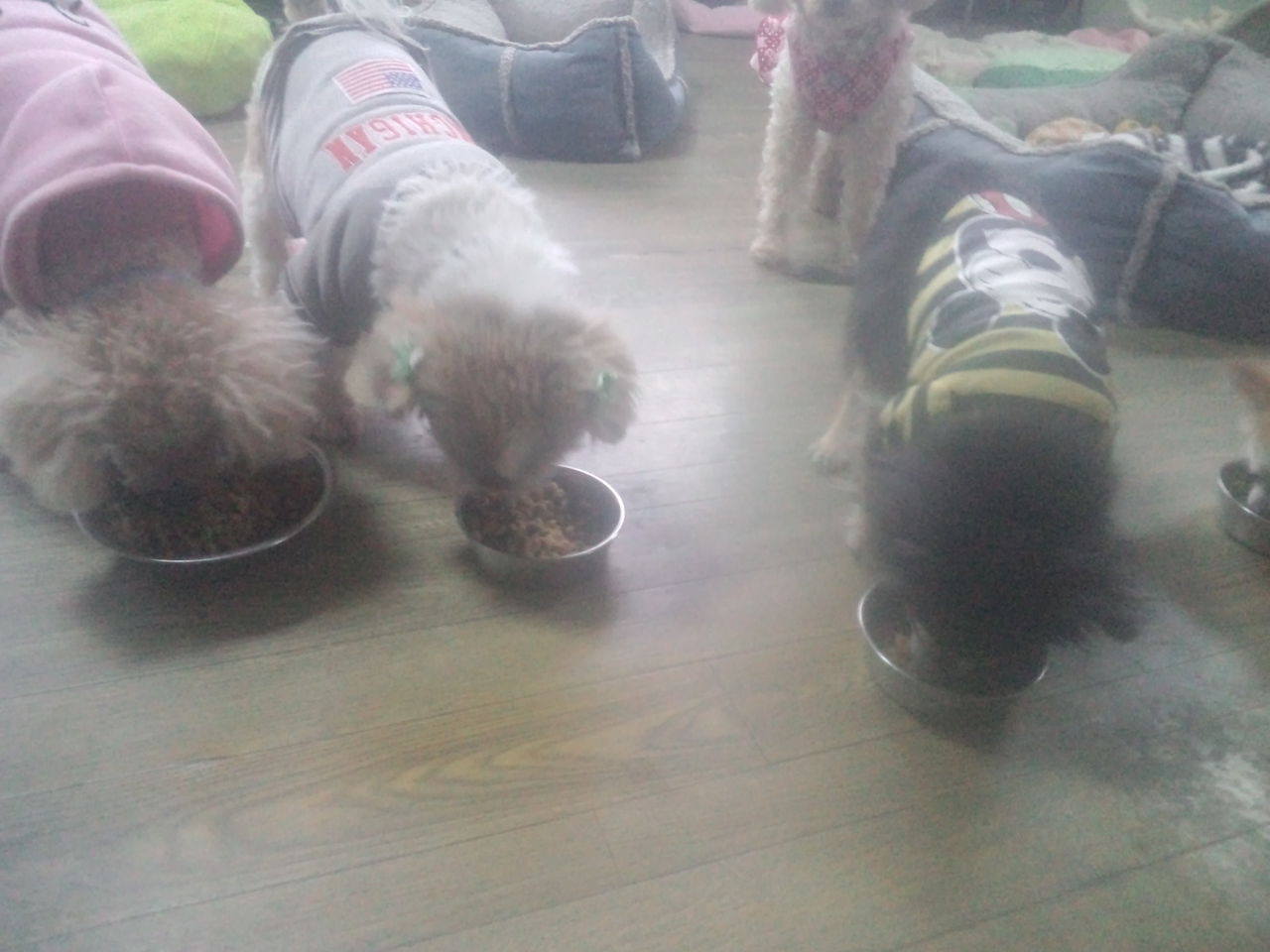 長期預かりゴールデンジョジョ君と小太郎君、キャバリア大吉君とチワワバロン君とトイプーゆずちゃん、しっかり完食しました。
