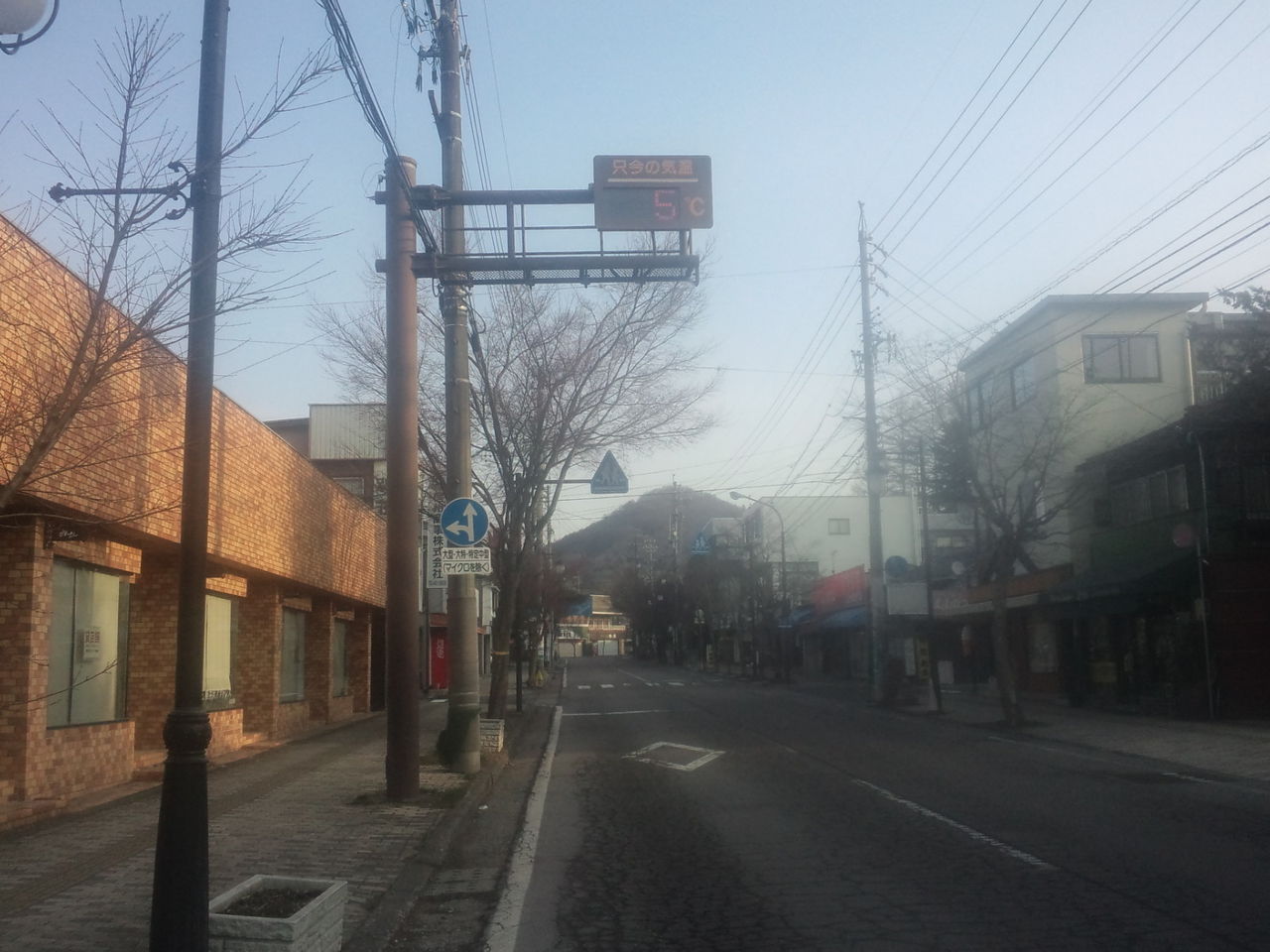 今朝の軽井沢の気温は5℃、天気は晴れてます。