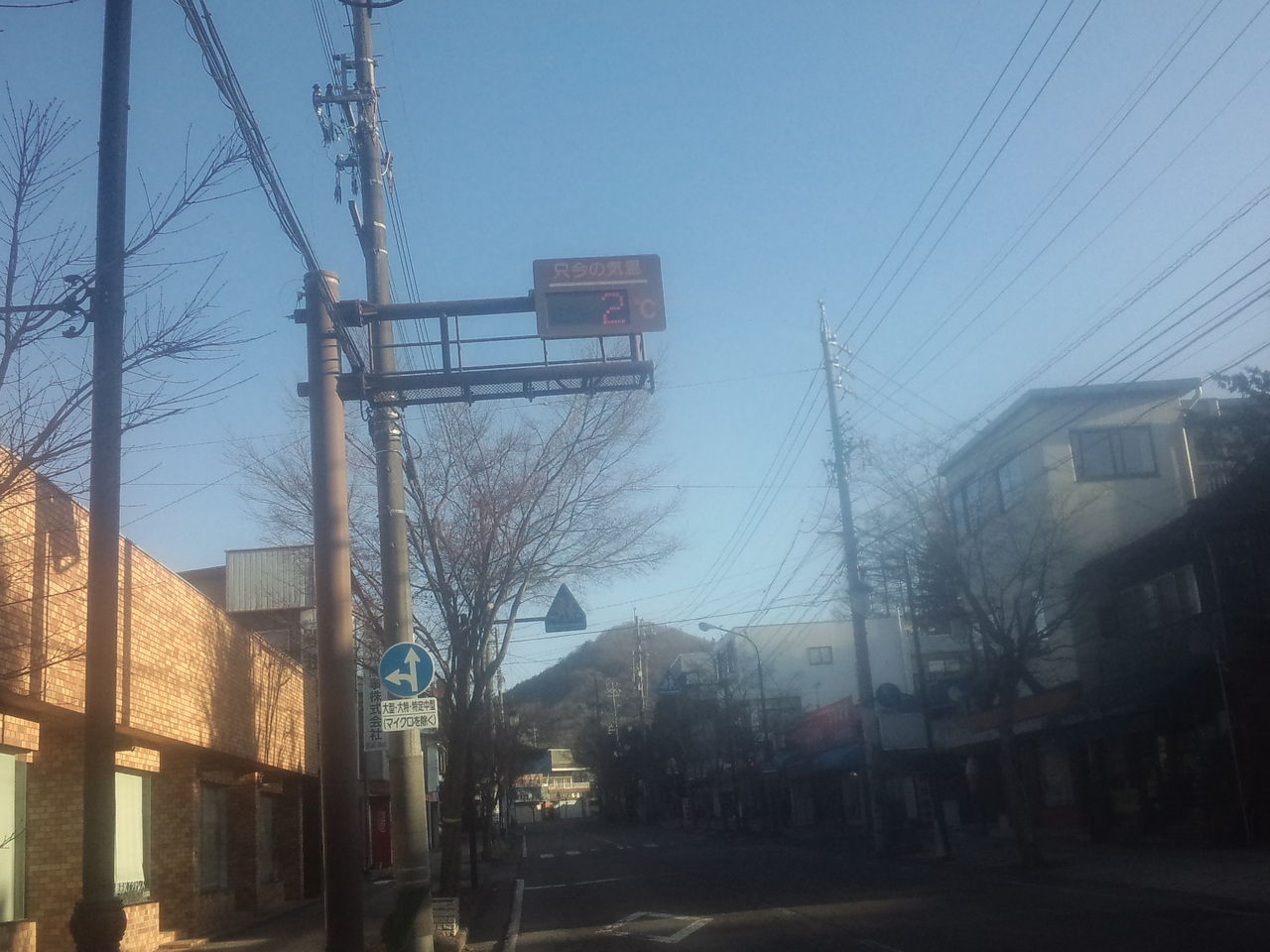 今朝の軽井沢の気温は2℃、天気は快晴です。