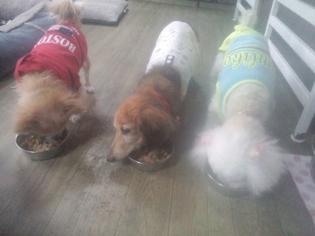 生涯預かりダックスティラミス君とラブ君とロッキー君、しっかり完食しました。