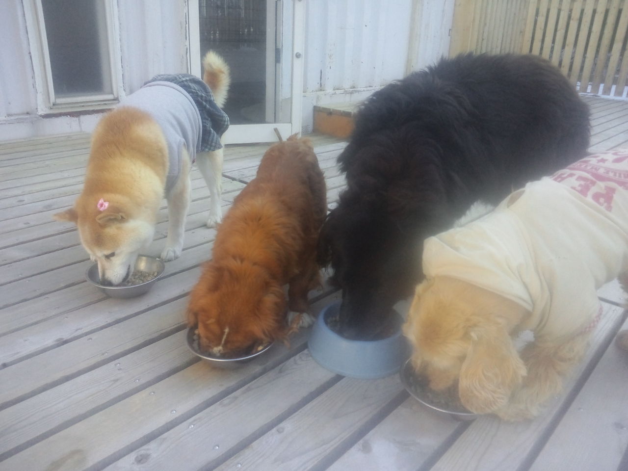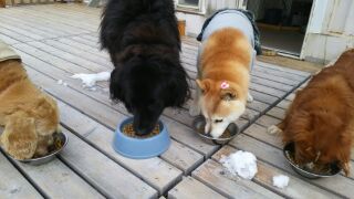 生涯預かり柴凛ちゃんとさくらちゃん、ミックスポー君とラブラドールマリンちゃん、コッカーチャッピーちゃんしっかり完食しました。