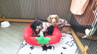 ダックスズミニーちゃんとプリンちゃんがチェックインしました。