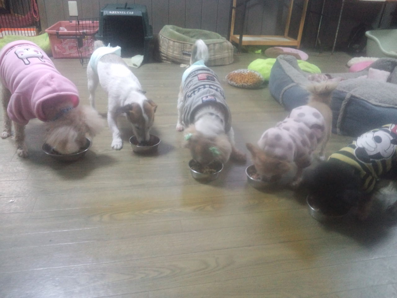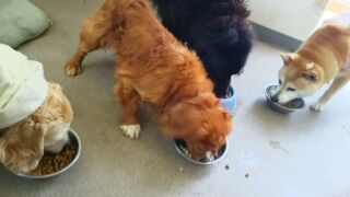 生涯預かり柴凛ちゃんとさくらちゃん、ミックスポー君とラブラドールマリンちゃん、コッカーチャッピーちゃんしっかり完食しました。