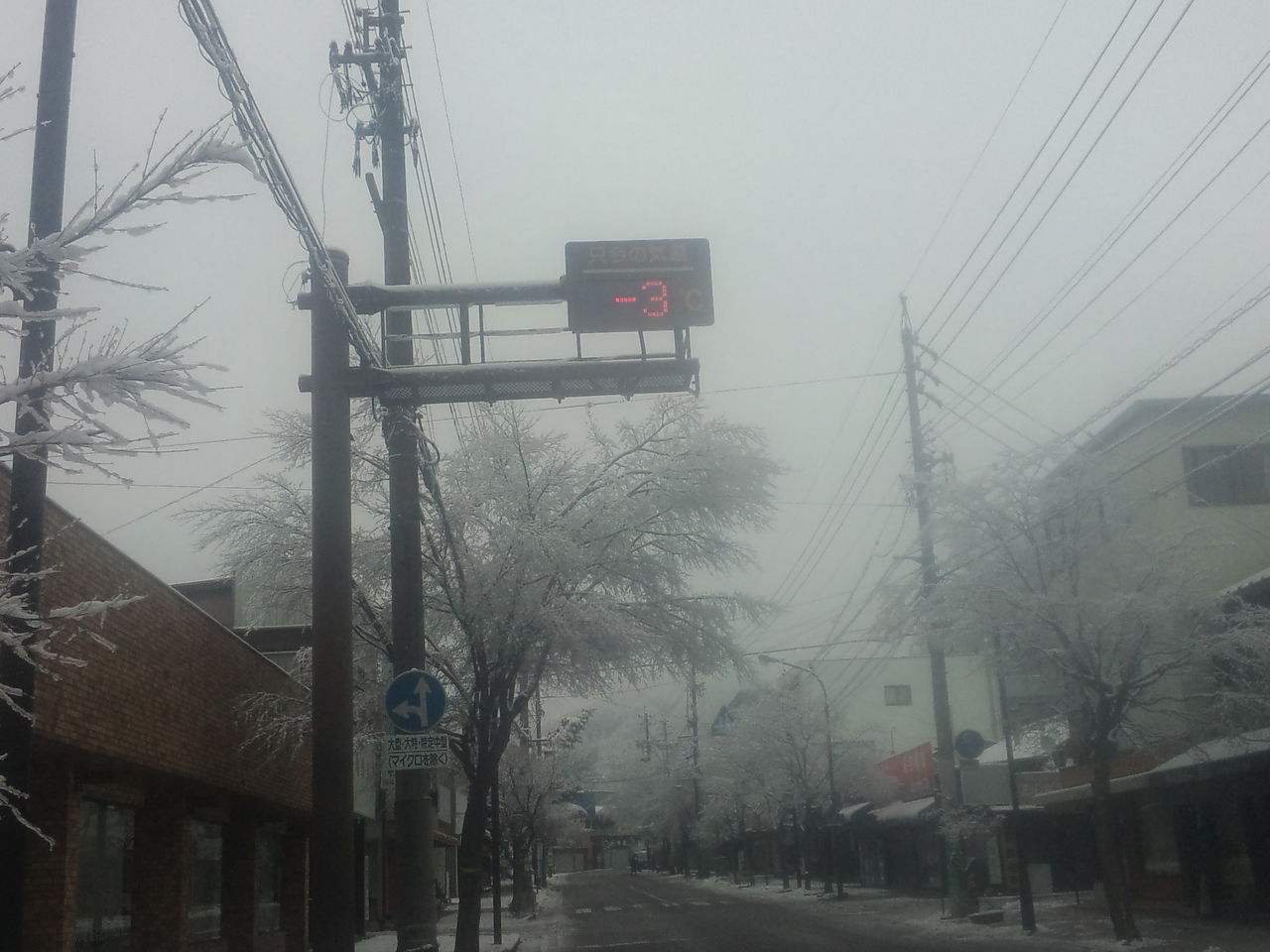 今朝の軽井沢の気温はマイナス3℃、天気は小雪が舞ってます。