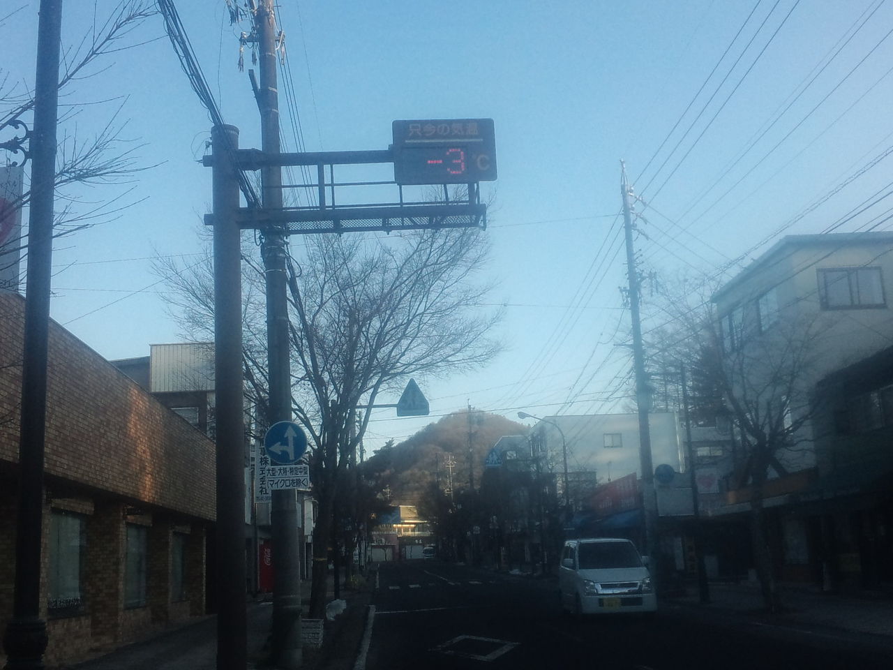 今朝の軽井沢の気温はマイナス3℃、天気は晴れてます。