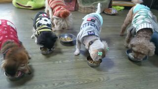 生涯預かりチワワ姫ちゃんとチョコたん君、トイプーテディ君とベラちゃん、しっかり完食しました。