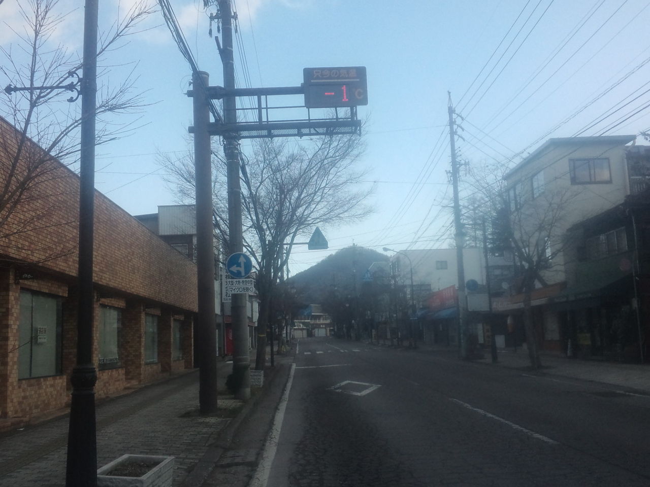 今朝の軽井沢の気温はマイナス1℃、天気は晴れてます。