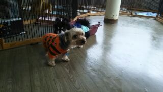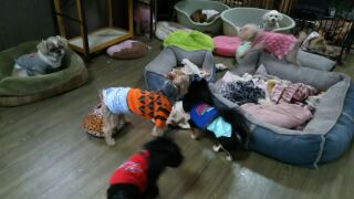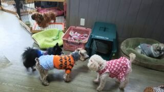 まだパピーのパールくんは凄く甘えん坊♪ スタッフを見付けて駆け寄ってきたり、撫でて撫でてをしたりしています。 前回は緊張している感じでしたが、今回は他のわんちゃんにもすぐに寄っていき遊んでいます。