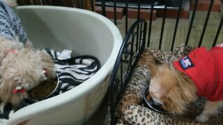 長期お預かりチワワバロンくん、トイプーゆずちゃんしっかり完食しました。