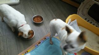 チワワズミルクちゃんしっかり完食しました。ピッチューくんは口をつけませんでした。