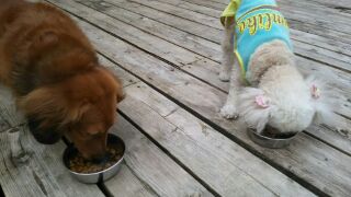 生涯お預かりラブラドールマリンちゃん、ミックスポーくんしっかり完食しました。