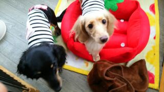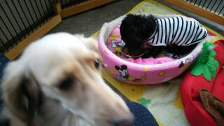 前に一度お試しで来てくれたダックスズミニーちゃん、プリンちゃんがチェックインしました。