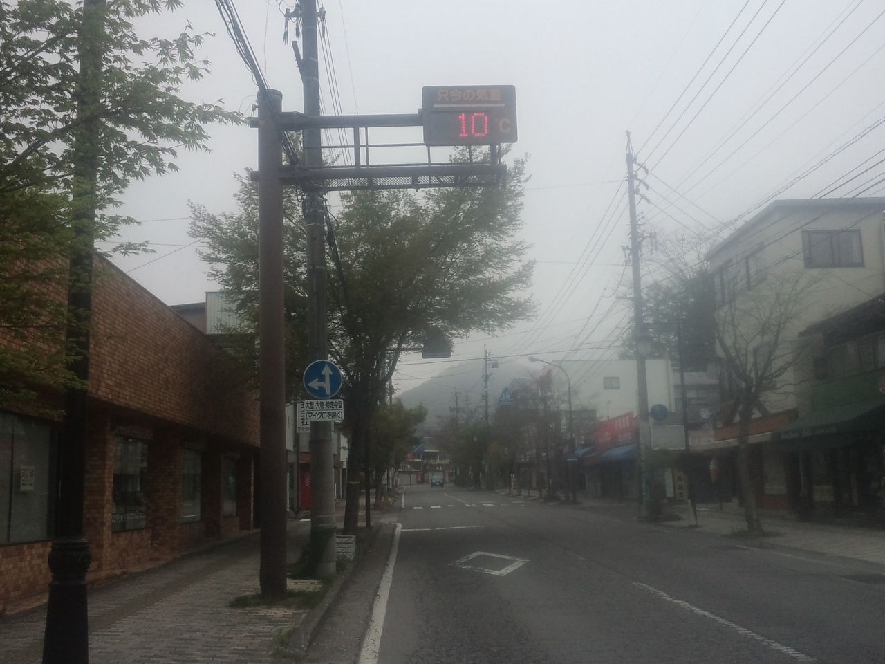 今朝の軽井沢の気温は10℃、天気予報では晴れなのに霧雨です。