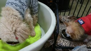 長期お預かりチワワバロンくん、トイプーゆずちゃんしっかり完食しました。