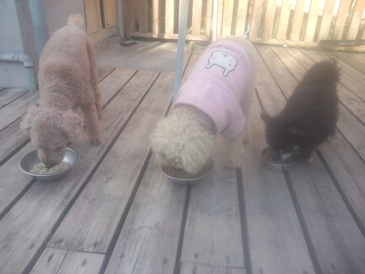 生涯預かりダックスティラミス君とロッキー君、ラブ君とシーズーココ君、しっかり完食しました。 トイプーププ君しっかり完食しました。 生涯預かりトイプーテディ君とゆずちゃん、しっかり完食しました。