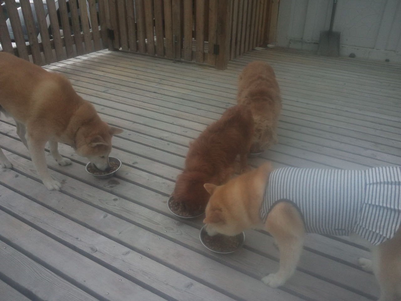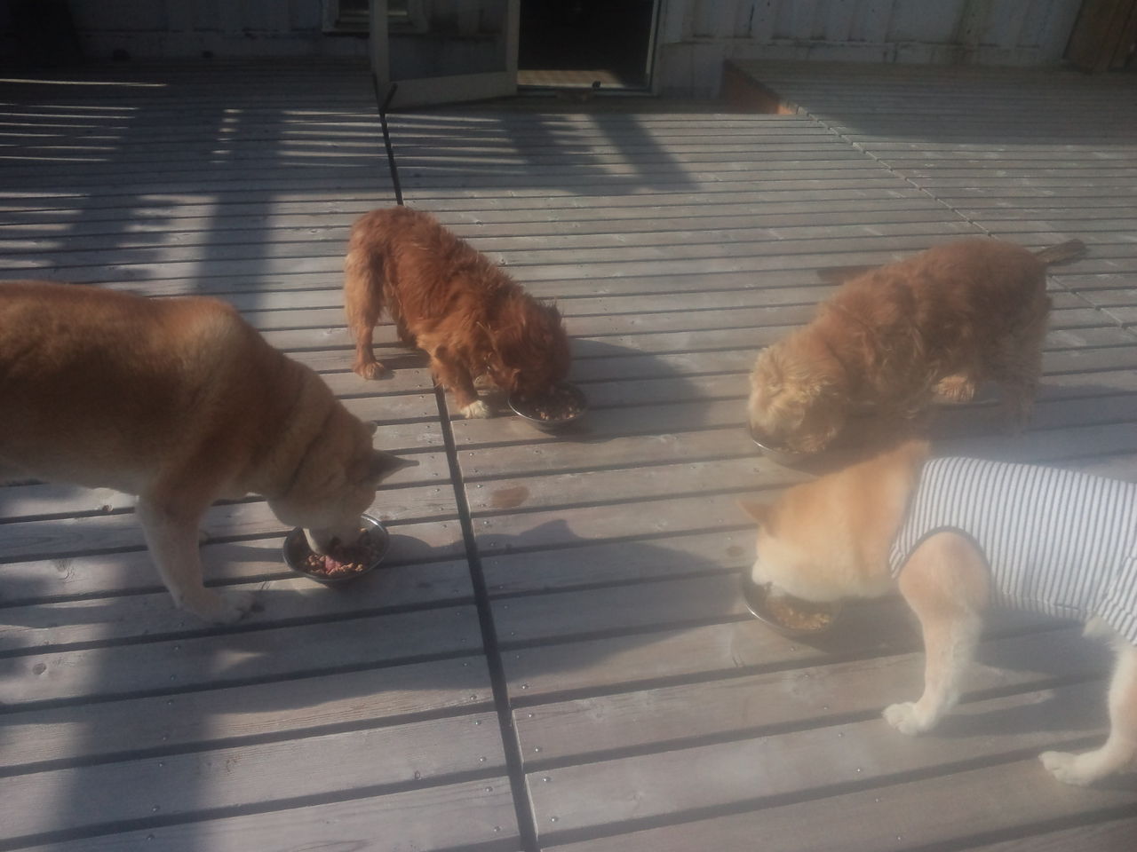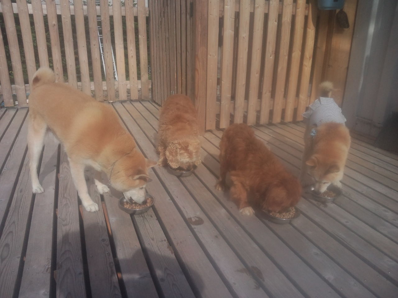 長期預かりゴールデンジョジョ君と小太郎君、キャバリア大吉君と柴竜君、しっかり完食しました。 生涯預かり柴凛ちゃんとさくらちゃん、コッカーチャッピーちゃんしっかり完食しました。