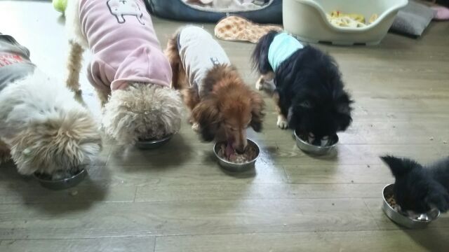 生涯預かりダックスティラミス君とロッキー君、ラブ君とシーズーココ君、しっかり完食しました。 長期預かりチワワバロン君とトイプーゆずちゃん、しっかり完食しました。