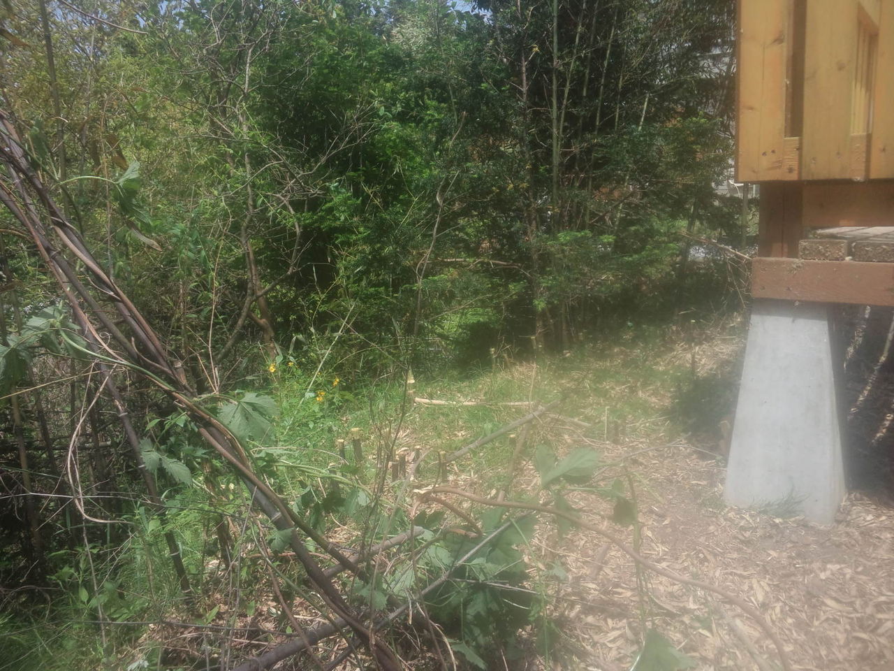 竹藪で分け入れなかった大型犬デッキ裏手、かなりさっぱりしました。