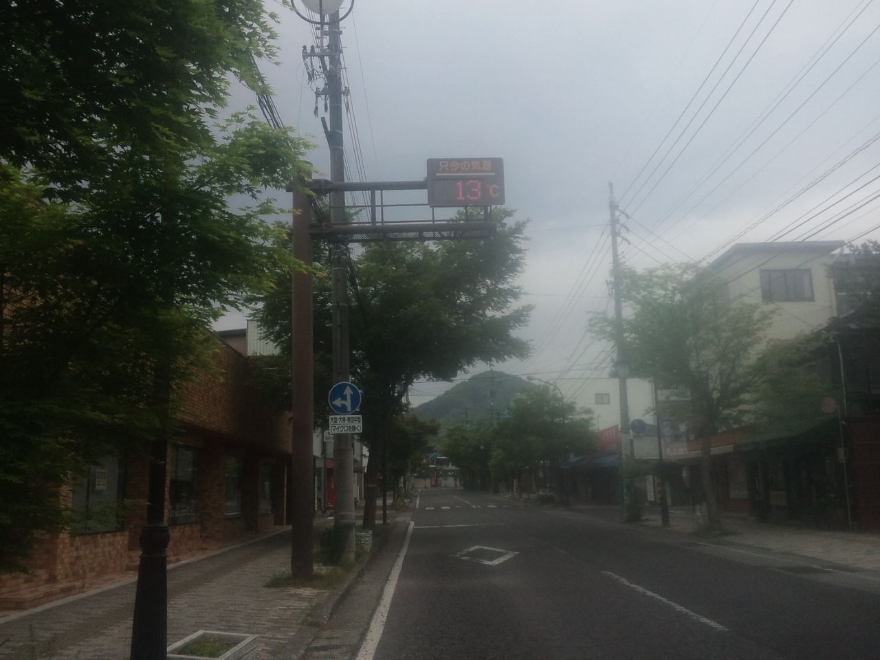 今朝の軽井沢の気温は13℃、天気は雨が降ってきました