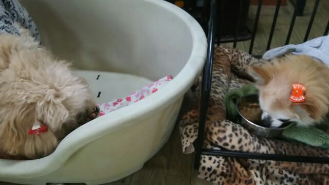 長期お預かりチワワバロンくん、トイプーゆずちゃんしっかり完食しました。