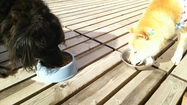 生涯お預かりコッカーチャッピーちゃん、柴犬凛ちゃんしっかり完食しました。