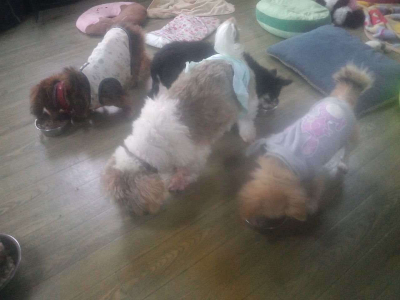 生涯預かりダックスティラミス君とロッキー君とラブ君、シーズーココ君しっかり完食しました。