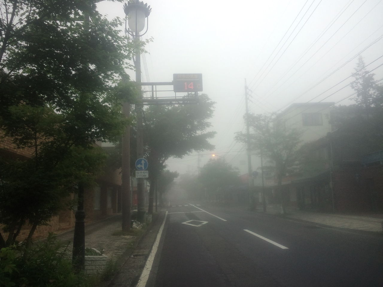 今朝の軽井沢の気温は14℃、天気は霧雨です。