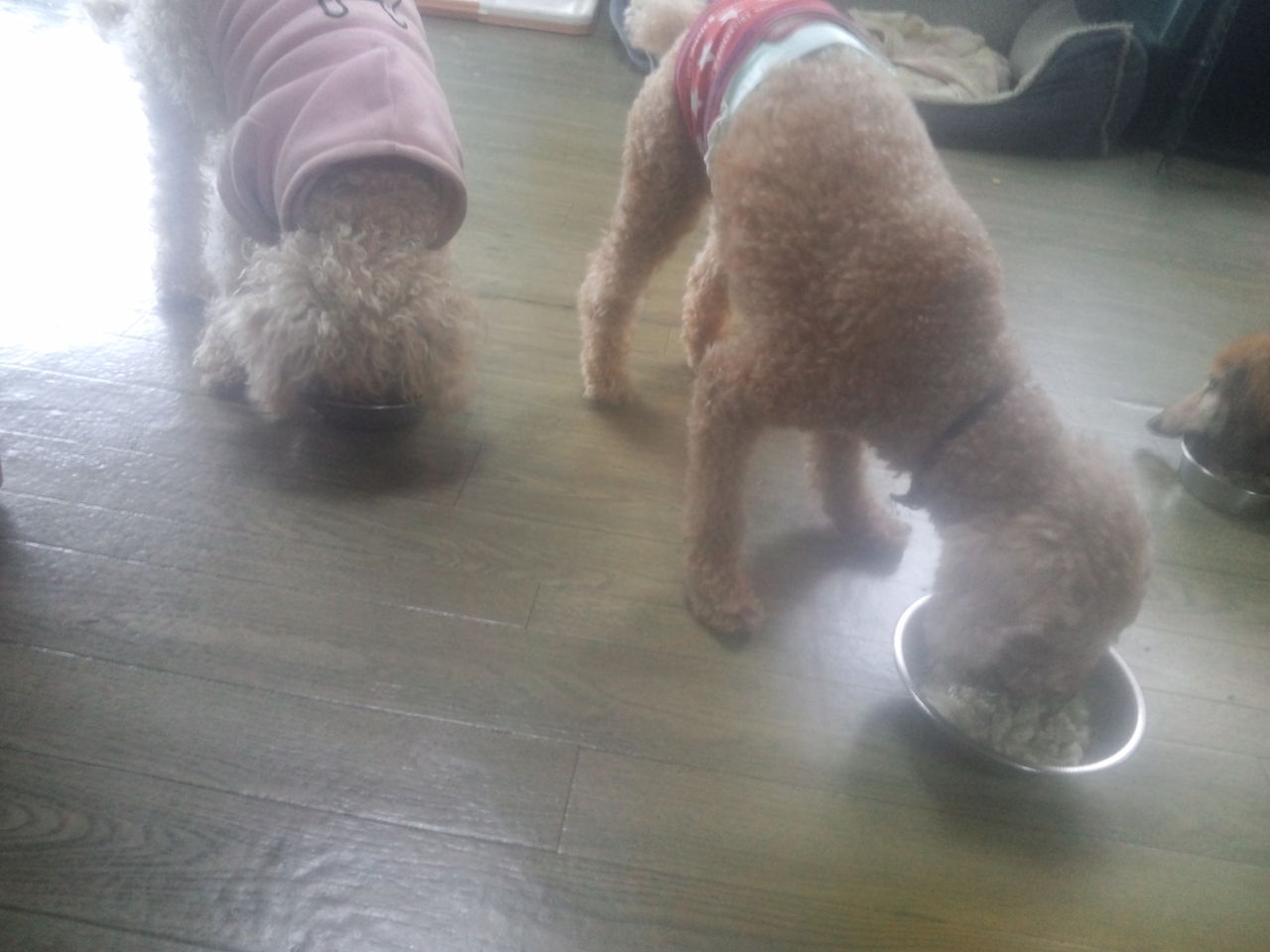 生涯預かりトイプーテディ君とベラちゃん、長期預かりゆずちゃんしっかり完食しました。