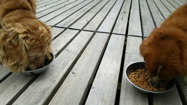 生涯お預かりコッカーチャッピーちゃん、柴犬凛ちゃんしっかり完食しました。