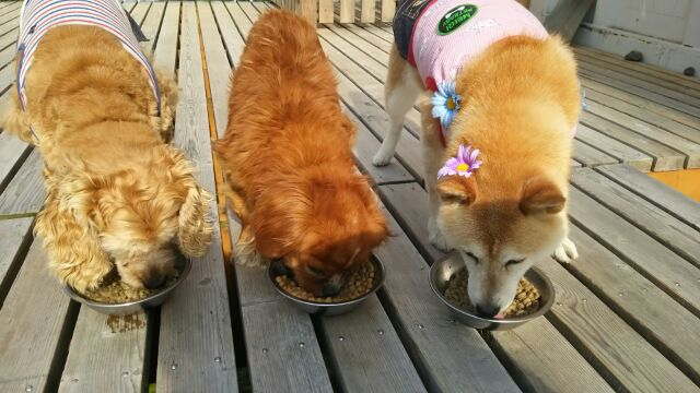 生涯お預かりコッカーチャッピーちゃん、柴犬凛ちゃんしっかり完食しました。