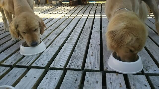長期預かりゴールデンジョジョ君と小太郎君、キャバリア大吉君と柴竜君、しっかり完食しました。