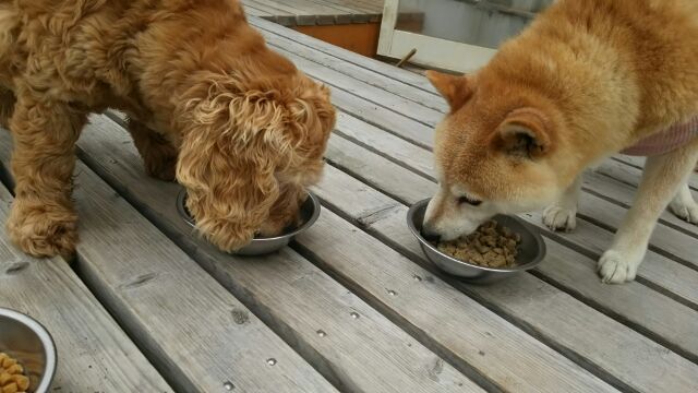 生涯お預かりコッカーチャッピーちゃん、柴犬凛ちゃんしっかり完食しました。