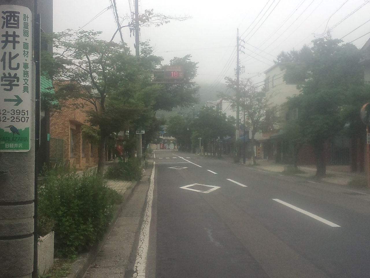 今朝の軽井沢の気温は18℃、天気は雨が降ってきました。