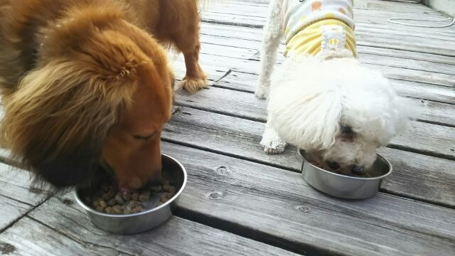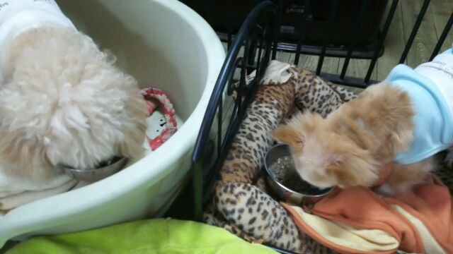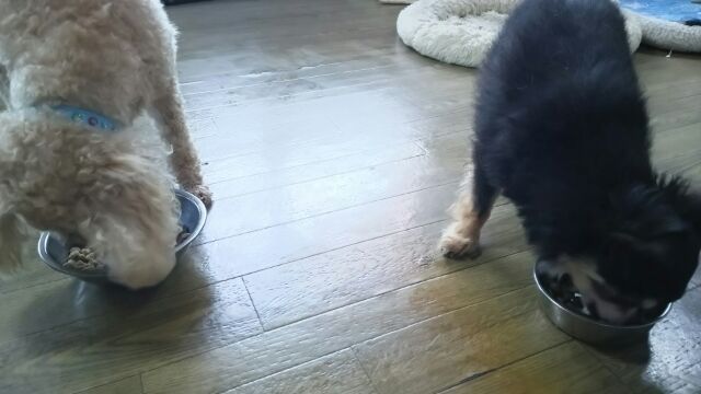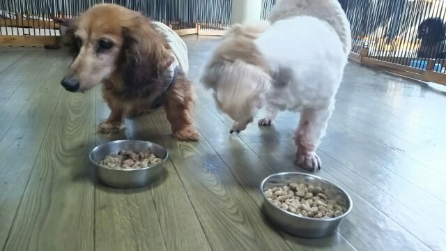 長期お預かりトイプーゆずちゃん、キャバリア大吉くんしっかり完食しました。