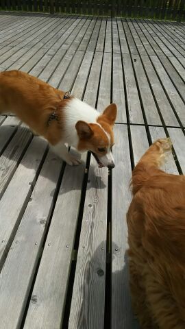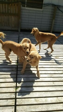 今日はゴールデンの小太郎くんと蓮がじゃれ合っているところに参戦 女の子は強いですね~