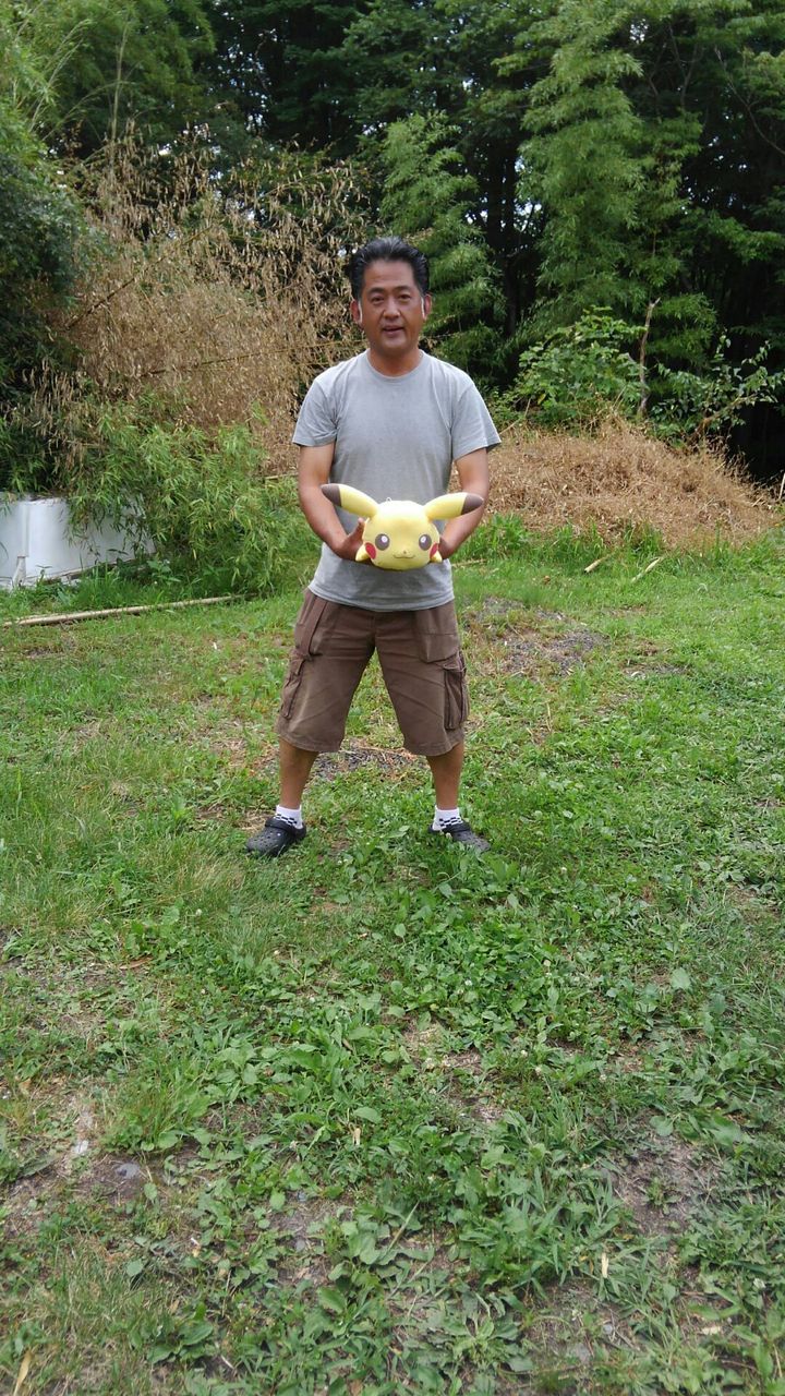 ダディー 敷地内でレアなピカチュウをゲットしました。
