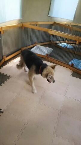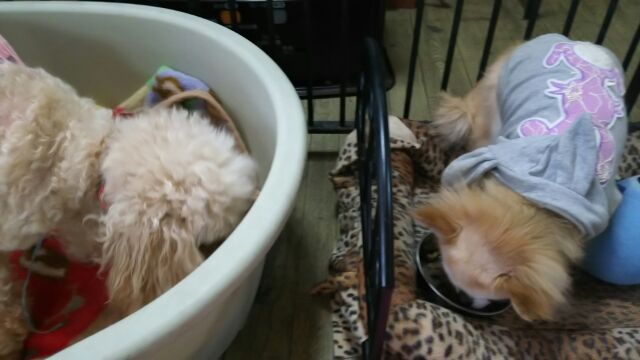 長期でお預かりになったシヴァちゃん。 すぐにご飯を完食です 歩き回ったり、疲れたら座って休んだりしています。 サークルに付けておいた水が減っているので自分で歩いていき飲んでいるようです。