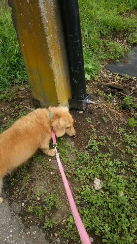 雨が上がってからのお散歩だったので少し遅くなってしまいました。 今日もすぐにうんちをして、少し歩くとおしっこをしました。 今日は草の匂いをたくさん嗅いでいました。