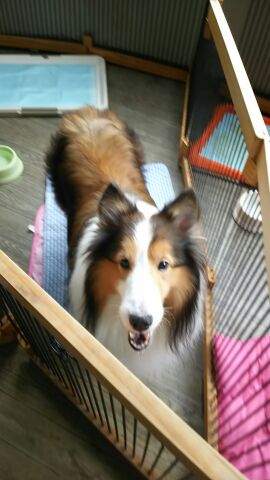賑やかなのが苦手かな? あまりサークルから出てきません。 スタッフが近くに行くと甘えて撫でて撫でて~をしています。