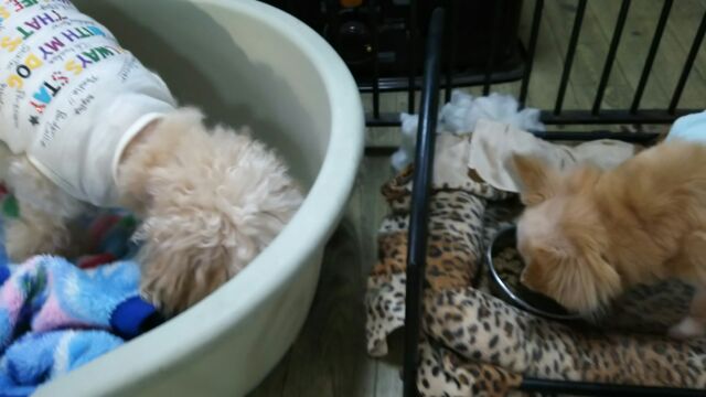 長期お預かりチワワバロンくん、トイプーゆずちゃんしっかり完食しました。