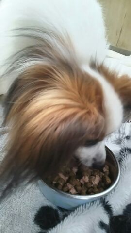 パピヨンズモネちゃんしっかり完食しました。 マックスくん缶詰を混ぜたらしっかり完食しました。