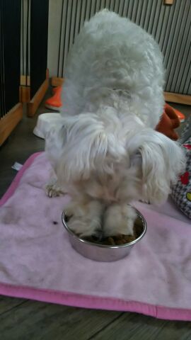 パピヨンズモネちゃんしっかり完食しました。 マックスくんは口をつけませんでした。