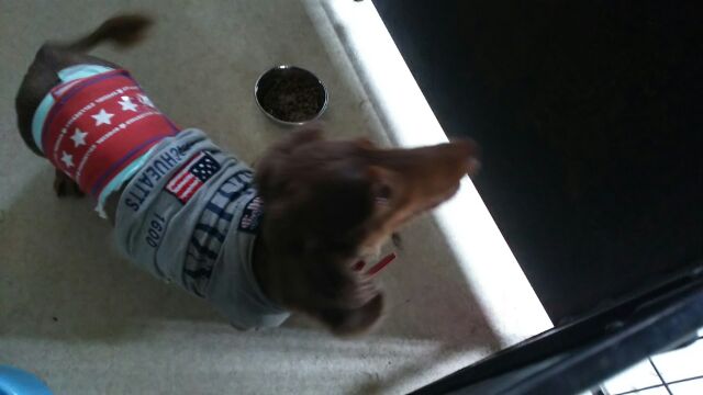 生涯お預かりチワワ姫ちゃん、チョコタンくんしっかり完食しました。