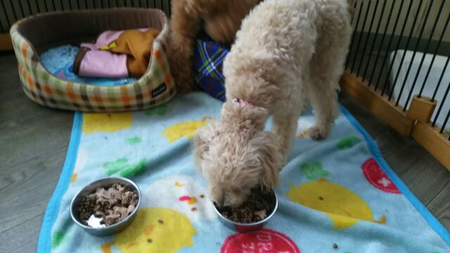 長期お預かりチワワバロンくん、トイプーゆずちゃんしっかり完食しました。